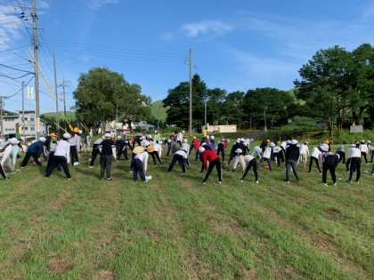 昨晩疲れが出た児童も、元気に集合できています。