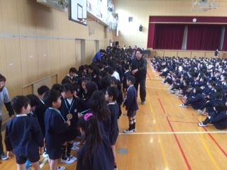 4月16日に「1年生を迎える会」を行いました。児童代表の6年生から迎える言葉を言ってもらったり、2年生から入学おめでとうメダルを首にかけてもらったりしました。新しく入学してきた1年生を、児童会全員で心から祝い、楽しいひとときをすごすことができました。
