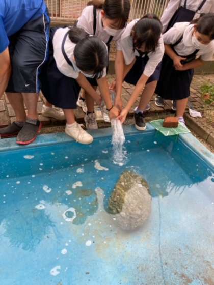 飼育委員会の人たちが中心となってお世話をしてくれます。