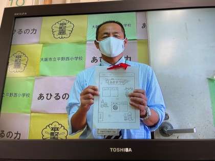 今日の全校朝会では、まず校長先生から1年生と2年生の「秋まつり」についてのお話がありました。2年生が考えた「お店」に1年生を招待してくれました。1年生もとても楽しい活動ができました。