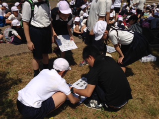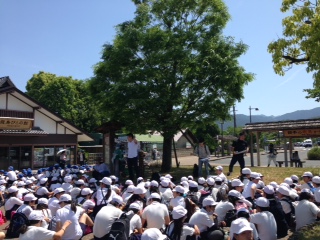 5月14日(木)朝、良い天気に恵まれ、6年生が飛鳥へ、遠足に出かけました。飛鳥駅に着き、そこからは班別にオリエンテーリングをしました。各班のメンバーで協力して、猿石や鬼の雪隠(せっちん)、鬼の俎(まないた)、亀石などの遺跡をめぐり、石舞台古墳のある公園に無事ゴールできました。
