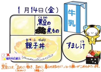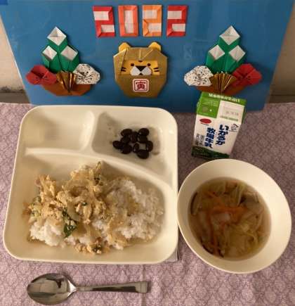 今日は、おせち料理のひとつである黒豆の煮ものが登場しました。今日の給食もおいしかった!とうれしい声が聞こえてきました。