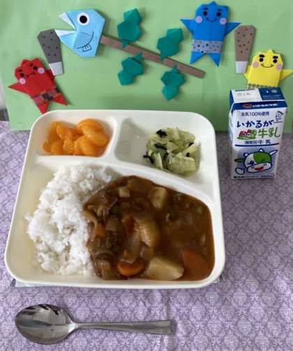 今日のハヤシライスには、型抜きしたにんじんが特別に入る、ラッキーにんじんの日でした。