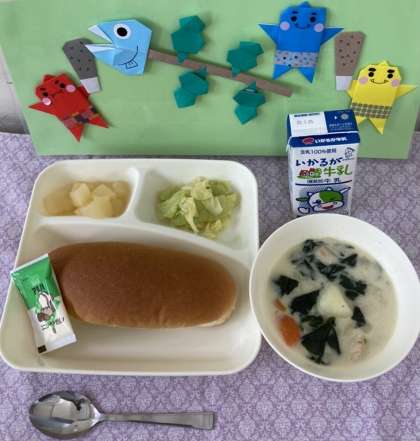 今日は、ほうれんそうやエリンギが入ったクリームシチューでした。エリンギの歯ごたえがおいしかったようです。