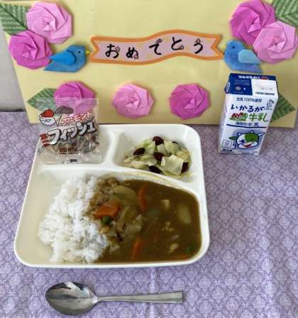 給食アンケートの好きな給食第一位に輝いた、カレーライスの日でした。給食のカレーライスはいつも大好評です。ラッキーにんじんもたくさん入り、楽しみながら食べることができました。