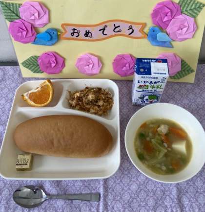 今日は、しっかりデコっとした形のデコポンが納品されました。また、今日が6年生最後の給食でした。今までの感謝の気持ちを込めて挨拶をしてくれていました。