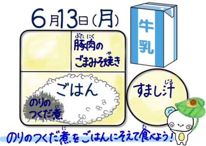 今日は、のり、かつおぶし、しいたけをみりん、こいくちしょうゆなどで煮込んで作った、のりのつくだ煮が大好評でした。ごはんがとっても進む一品でした。