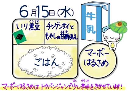 今日のマーボーはるさめは、トウバンジャンで少し辛味を効かせ、じゃがいもでんぷんから作られたはるさめを使いました。ごはんによく合うおかずだったようです。