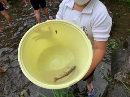 うまくつかめた子、友だちに手伝ってもらってつかませてもらった子、なんとか触ることができた子。