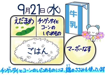 「チンゲンサイとコーンのいためもの」は、チンゲンサイとコーンと鶏のささみを塩、こしょう、しょうゆで味付けしており、あっさりとしたおかずでした。
