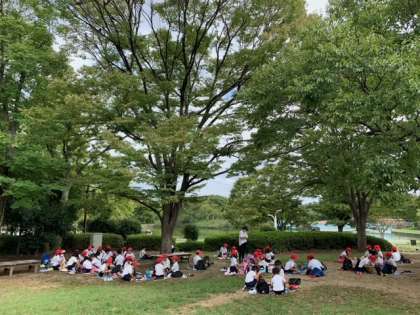 ?散策中もしきりにお弁当の時間を気にしていた子どもたち。
