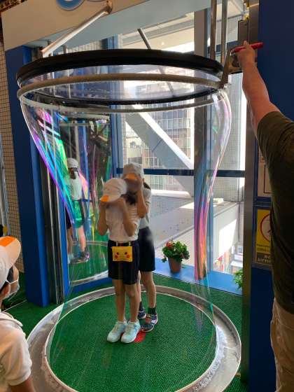 シャボン玉の中に入りました! 内側からはどんな世界が見えるのでしょう?
