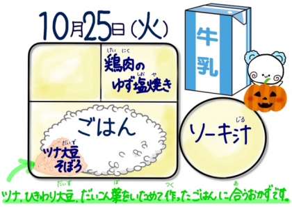 今日は、沖縄県の郷土料理であるソーキ汁が登場しました。豚ばら肉を使ったお汁は、食べごたえがありおいしかったようです。