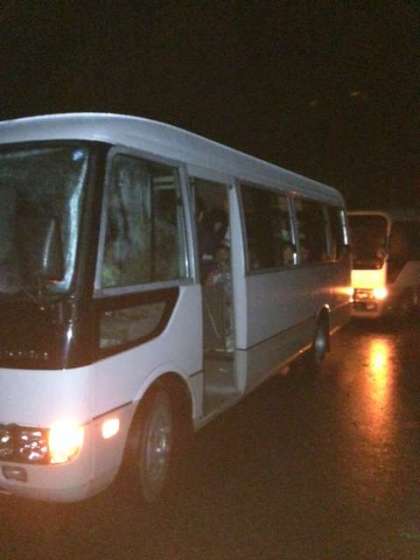 マイクロバスに乗って行きました。車窓からホタルのまばたく光を見て、みんな感動です。