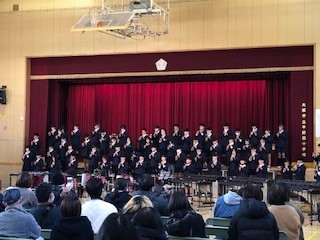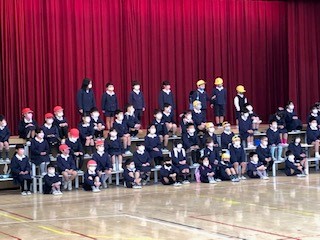 1年生と6年生は、講堂でよびかけや合唱、合奏を発表しました。