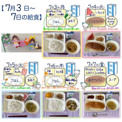 7月3日〜7日の給食