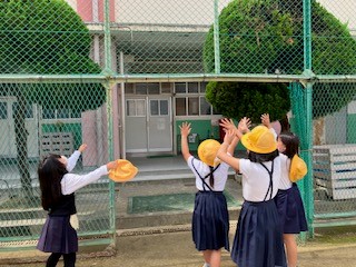 熱中症対策の一つとして、運動場にミストシャワーを設置しました。
