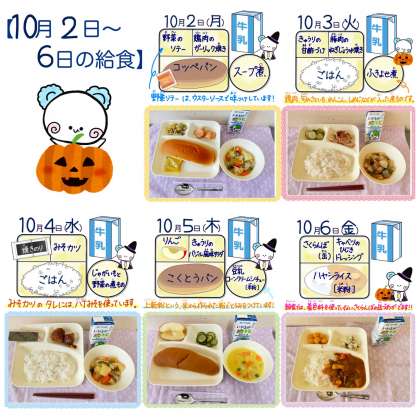 10月2日から6日の給食