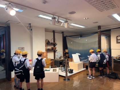 昔の生活の様子や大和川の歴史についてメモをとりながら見学しています。