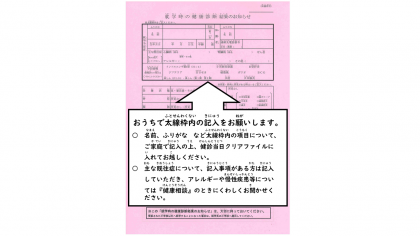 「就学時の健康診断結果のお知らせ」<ピンク色>