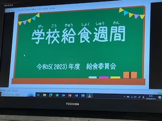 そのあと 給食委員会の人たちが給食週間にちなみ 給食調理や給食の歴史などについて発表してくれました