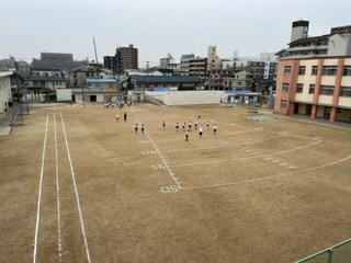 さっそく、3・4時間目に5年生が運動場で50m走とソフトボール投げをしていました。