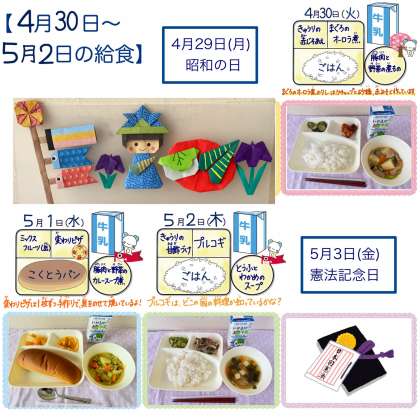 4月30日から5月2日の給食
