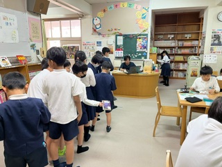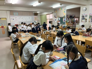 3時間目、「しーーーん」とした図書室で5年2組のみんなが読書をしていました。