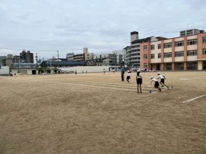 3年の体力測定では、6年3組がお手伝いをしていました。