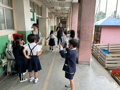 廊下からも声が聞こえてきます。学校で働くいろいろな人にインタビューしているそうです。