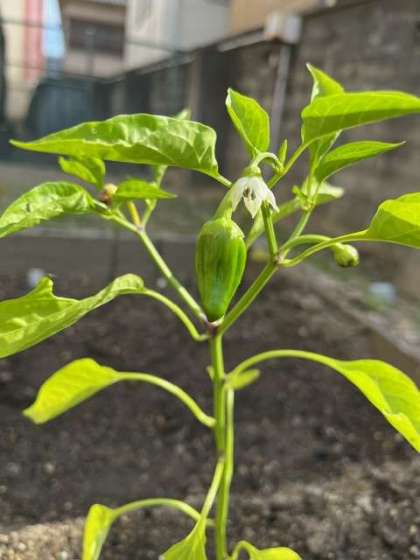 4年生の学習園では、ピーマンの赤ちゃんを見つけました!