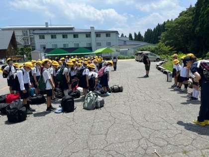 到着しました。 車内で眠っていた人もいましたが、みんな元気です。 開舎式を終えて部屋へ移動します。