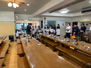 食事係さん、初仕事にむけて説明を聞きます。 ^_^{真剣です!