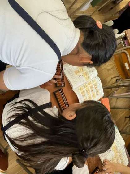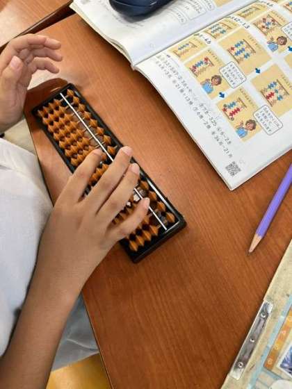 次の時間、4年生の教室にいくと、「そろばん」の学習をしていました。