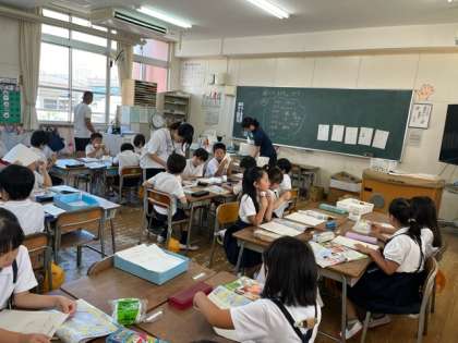 昨日に引き続き、実習生と授業を見学しています。今日(4日)の2時間目は、2年生の生活です。