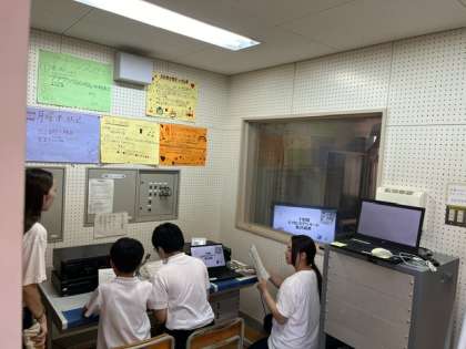 まず、美化委員会から「1学期美化活動週間のアンケート結果」が発表されました。「掃除場所はピカピカにできましたか?」「掃除道具は片づけましたか?」「身のまわりは整理整頓できていますか?」について、なかなかよい結果でした。また、1学期の掃除の点検の結果も発表されました。6つの学級が金賞に輝きました!