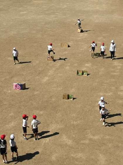 2時間目の運動場で2年生が体育をしていました。