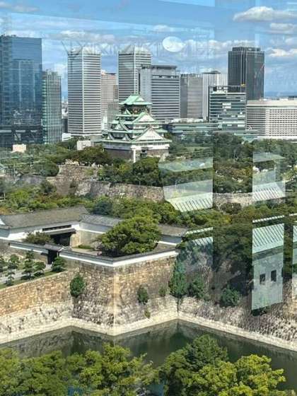 ^_^{撮影禁止っぽいので、10階から見える大阪城の写真です…