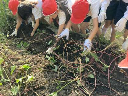 10月11日(金)2年生が学習園で育てたさつまいもを収穫したそうです。