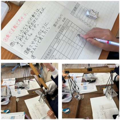 今日は写真の道具を使って、重さを数で表す方法を考えていました。