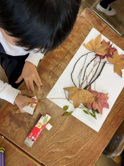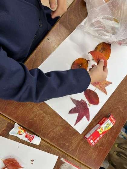 5時間目に公園で見つけた「秋」を使って作品を作っていました。