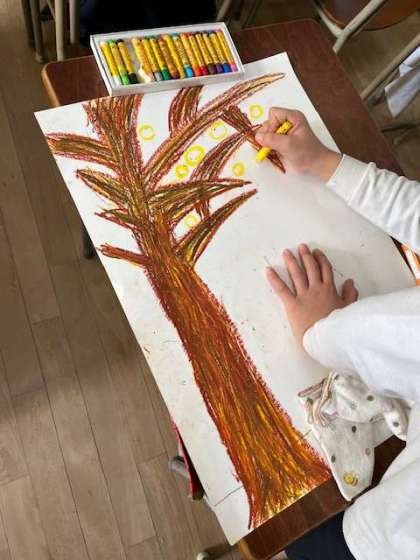 パスを使って力強くモチモチの木を描いていました。