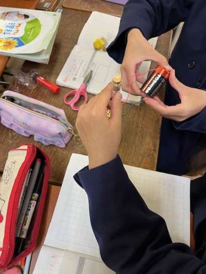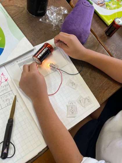 「校長先生見て!こうすると…光る!」と見せてくれました。