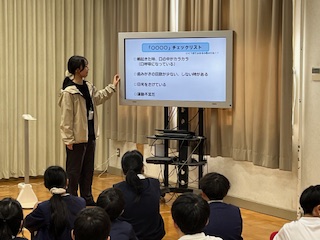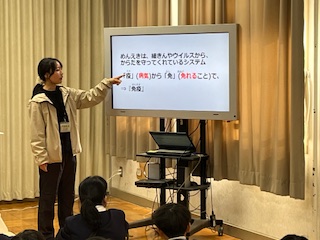 測定前には「免疫」について、保健室の先生からお話がありました。