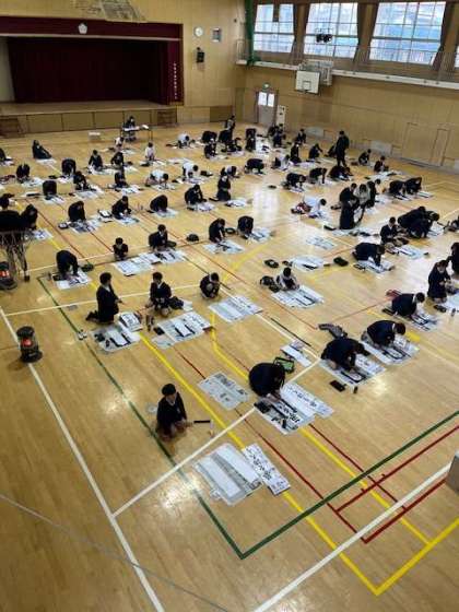 ^_^{書き初め用の半紙は児童机で書きにくいしね…