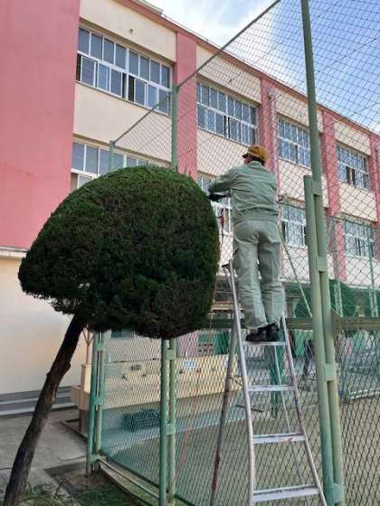 理科室前の樹木の剪定作業です。