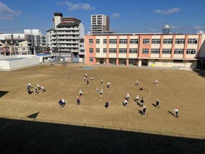 寒い朝ですが、2年生が元気になわとびをしています。