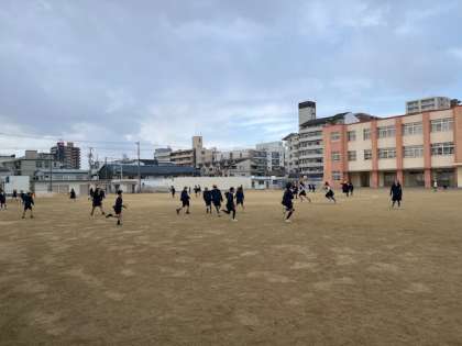 昨日に引き続き、今日の昼休みにも雪が降ってきました。