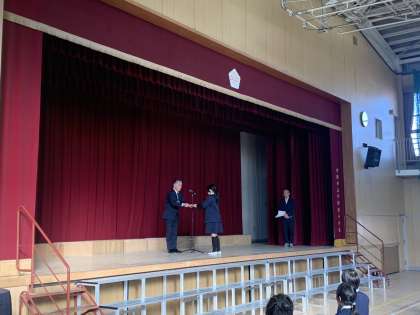 今日は平野区の副区長さんがいらっしゃって、「見守り隊」への感謝状と「読書ノート」達成者への表彰状の授与がありました。