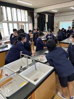 安全メガネを装着して、実験開始です。